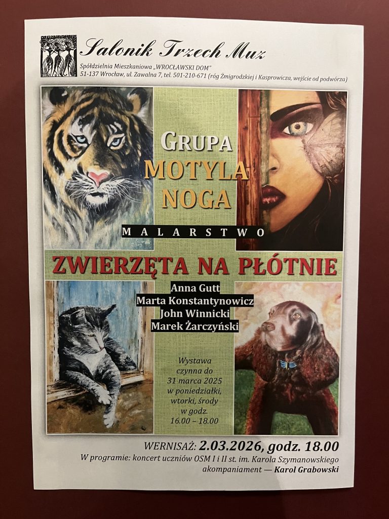 2 marca 2026 r. o godz. 18 nastąpiło otwarcie wystawy malarstwa grupy „Motyla noga”.