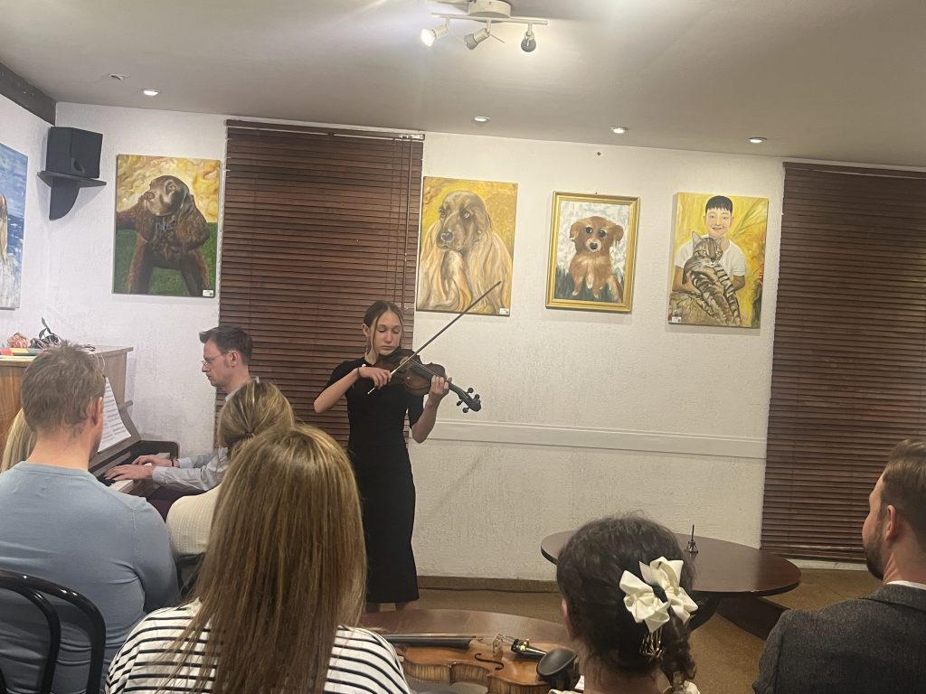 Wernisaż uświetnił koncert uczniów Ogólnokształcącej Szkoły Muzycznej I i II stopnia im. Karola Szymanowskiego we Wrocławiu, którym akompaniował Kamil Grabowski.